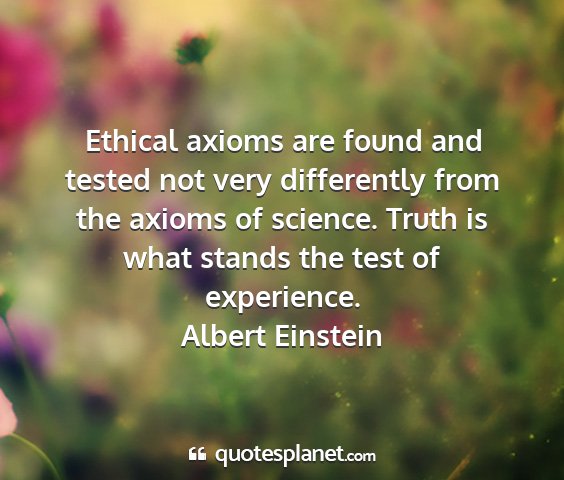 Ethical axioms are found and tested not very differently from the axioms of science. Truth is what stands the test of experience.Albert Einstein