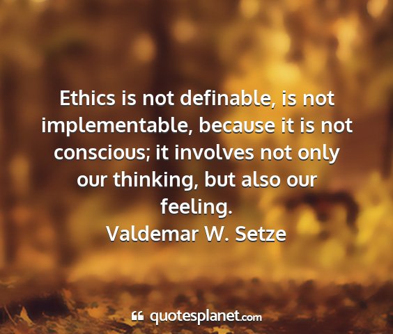 Ethics is not definable, is not implementable, because it is not conscious; it involves not only our thinking, but also our feeling.Valdemar W. Setze