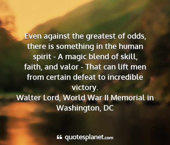 Even against the greatest of odds, there is something in the human spirit - A magic blend of skill, faith, and valor - That can lift men from certain defeat to incredible victory.Walter Lord, World War II Memorial in Washington, DC
