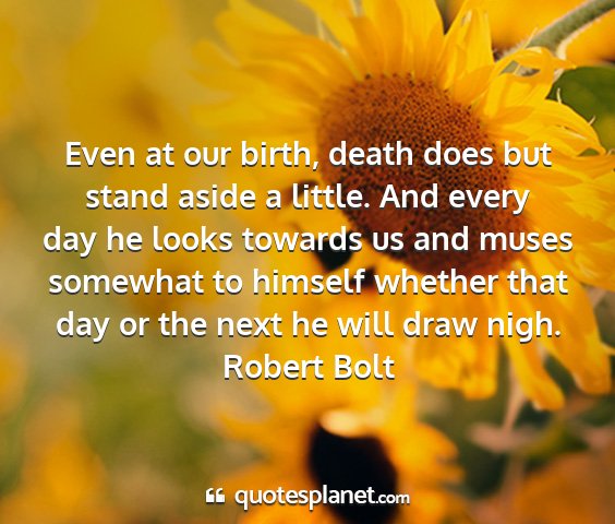Even at our birth, death does but stand aside a little. And every day he looks towards us and muses somewhat to himself whether that day or the next he will draw nigh.Robert Bolt
