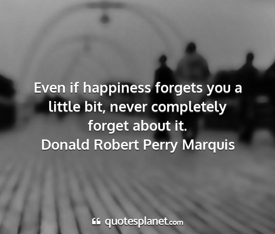 Even if happiness forgets you a little bit, never completely forget about it.Donald Robert Perry Marquis