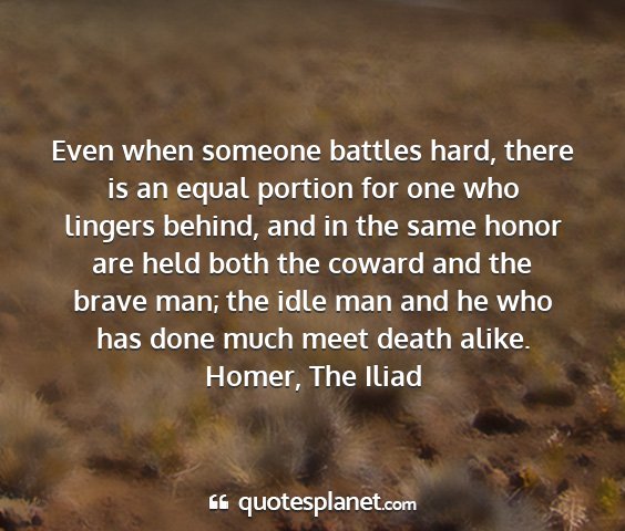 Even when someone battles hard, there is an equal portion for one who lingers behind, and in the same honor are held both the coward and the brave man; the idle man and he who has done much meet death alike.Homer, The Iliad