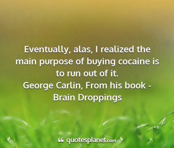 Eventually, alas, I realized the main purpose of buying cocaine is to run out of it.George Carlin, From his book - Brain Droppings