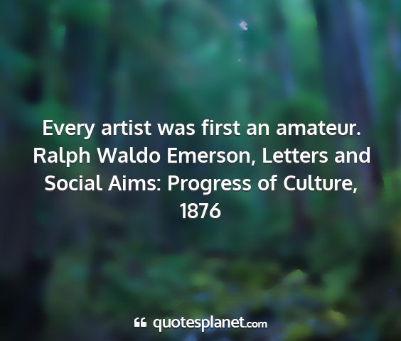 Every artist was first an amateur.Ralph Waldo Emerson, Letters and Social Aims: Progress of Culture, 1876