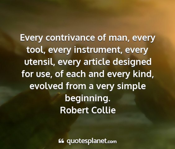 Every contrivance of man, every tool, every instrument, every utensil, every article designed for use, of each and every kind, evolved from a very simple beginning.Robert Collie