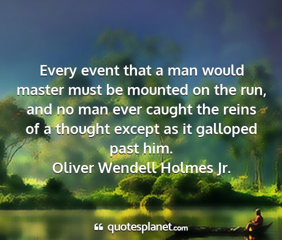 Every event that a man would master must be mounted on the run, and no man ever caught the reins of a thought except as it galloped past him.Oliver Wendell Holmes Jr.