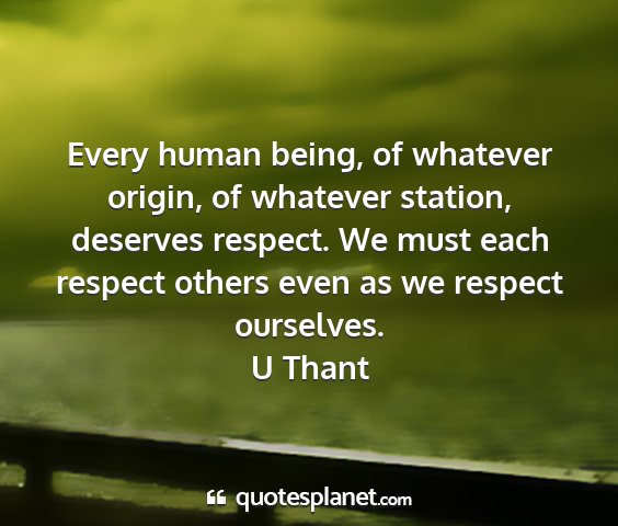 Every human being, of whatever origin, of whatever station, deserves respect. We must each respect others even as we respect ourselves.U Thant
