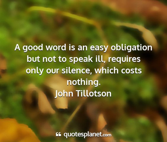 A good word is an easy obligation but not to speak ill, requires only our silence, which costs nothing.John Tillotson