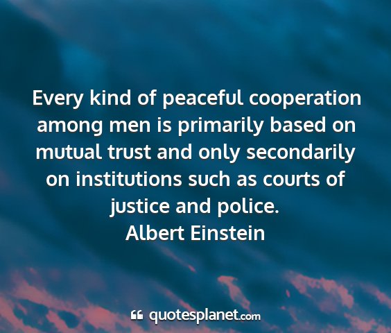 Every kind of peaceful cooperation among men is primarily based on mutual trust and only secondarily on institutions such as courts of justice and police.Albert Einstein