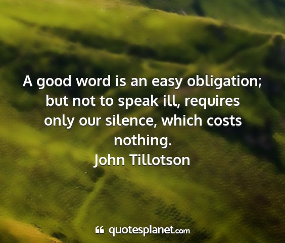 A good word is an easy obligation; but not to speak ill, requires only our silence, which costs nothing.John Tillotson