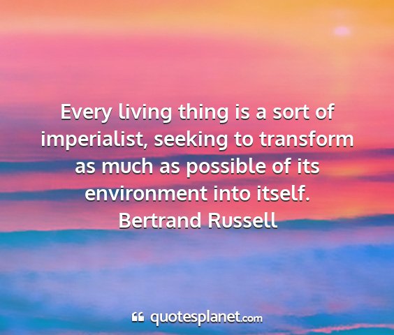 Every living thing is a sort of imperialist, seeking to transform as much as possible of its environment into itself.Bertrand Russell