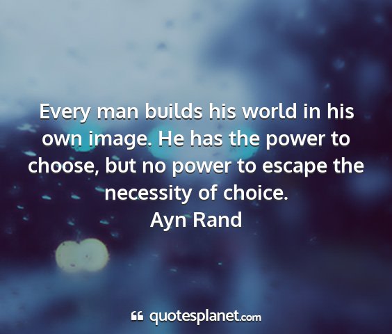 Every man builds his world in his own image. He has the power to choose, but no power to escape the necessity of choice.Ayn Rand