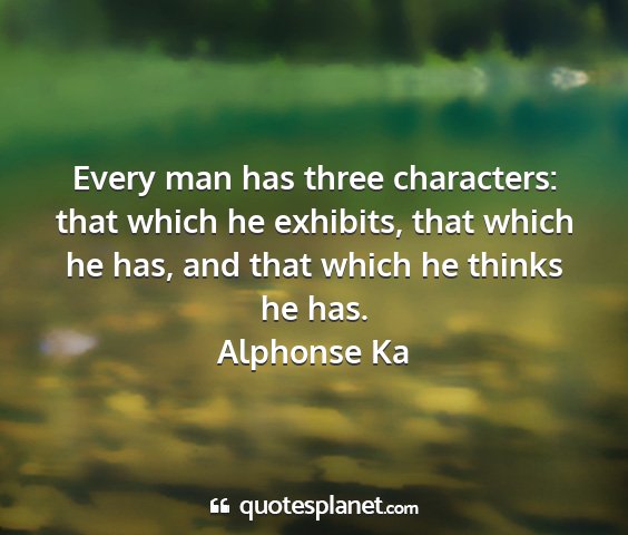 Every man has three characters: that which he exhibits, that which he has, and that which he thinks he has.Alphonse Ka