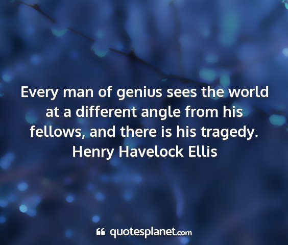 Every man of genius sees the world at a different angle from his fellows, and there is his tragedy.Henry Havelock Ellis