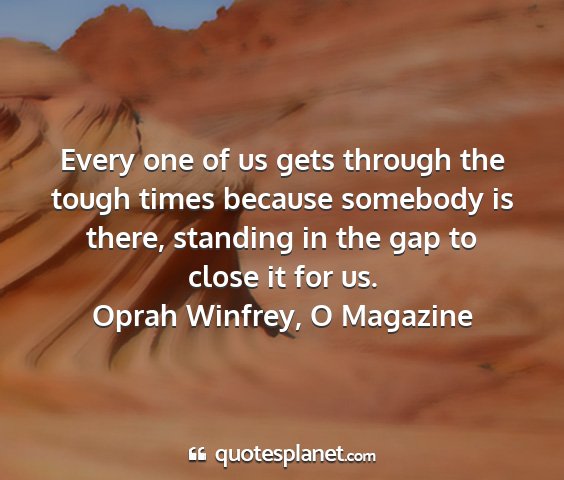 Every one of us gets through the tough times because somebody is there, standing in the gap to close it for us.Oprah Winfrey, O Magazine