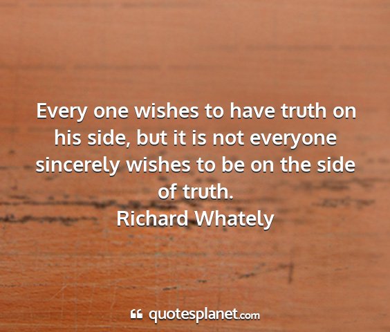 Every one wishes to have truth on his side, but it is not everyone sincerely wishes to be on the side of truth.Richard Whately