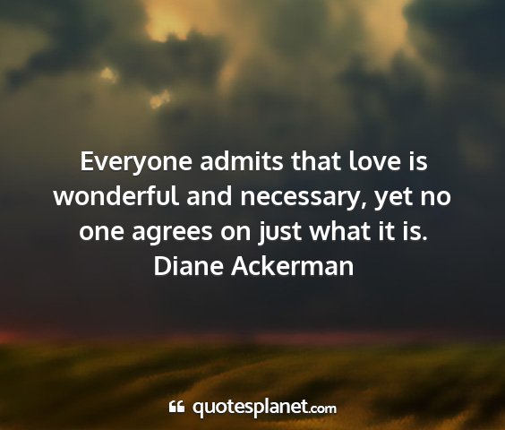Everyone admits that love is wonderful and necessary, yet no one agrees on just what it is.Diane Ackerman