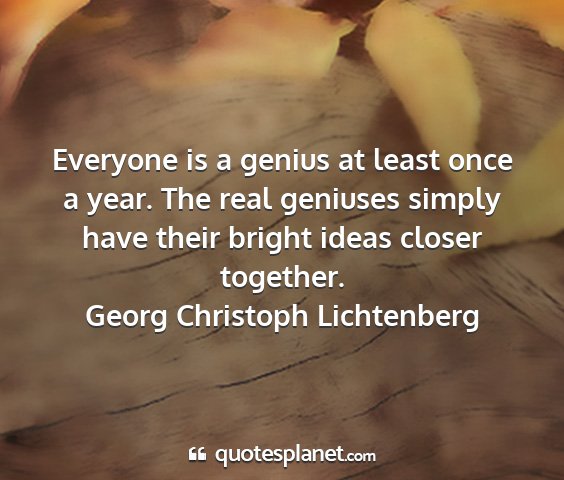 Everyone is a genius at least once a year. The real geniuses simply have their bright ideas closer together.Georg Christoph Lichtenberg