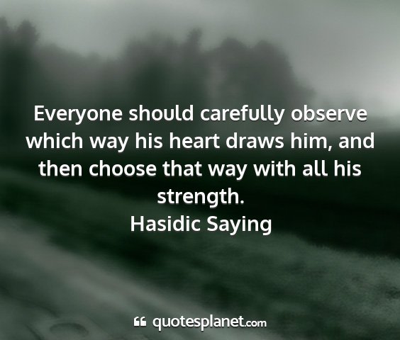 Everyone should carefully observe which way his heart draws him, and then choose that way with all his strength.Hasidic Saying