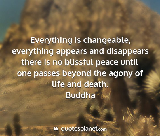 Everything is changeable, everything appears and disappears there is no blissful peace until one passes beyond the agony of life and death.Buddha