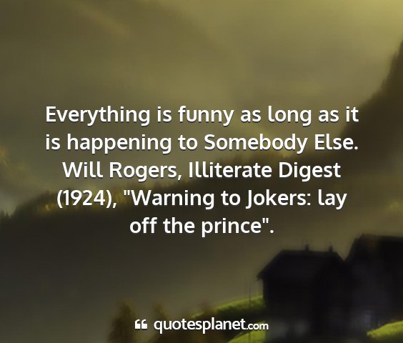 Everything is funny as long as it is happening to Somebody Else.Will Rogers, Illiterate Digest (1924), "Warning to Jokers: lay off the prince".