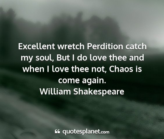 Excellent wretch Perdition catch my soul, But I do love thee and when I love thee not, Chaos is come again.William Shakespeare