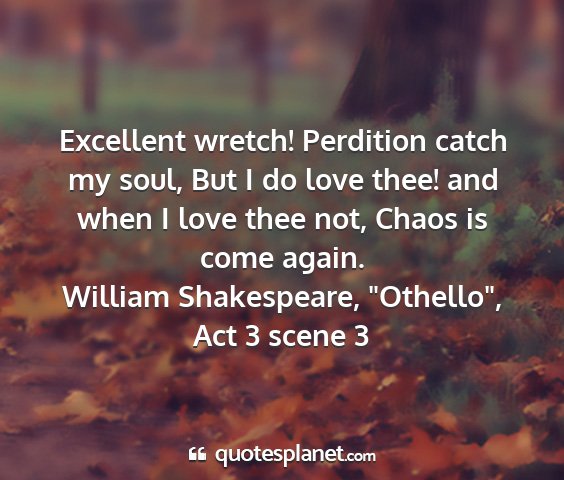 Excellent wretch! Perdition catch my soul, But I do love thee! and when I love thee not, Chaos is come again.William Shakespeare, "Othello", Act 3 scene 3