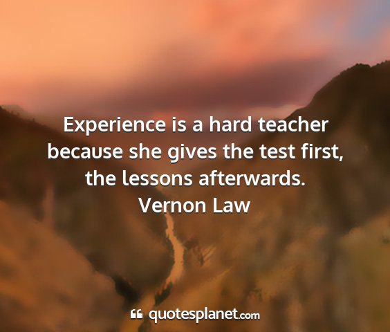 Experience is a hard teacher because she gives the test first, the lessons afterwards.