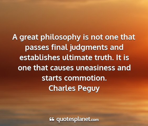 A great philosophy is not one that passes final judgments and establishes ultimate truth. It is one that causes uneasiness and starts commotion.Charles Peguy