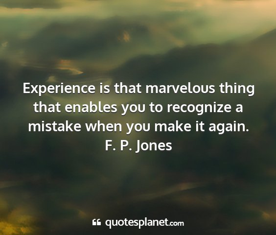 Experience is that marvelous thing that enables you to recognize a mistake when you make it again.F. P. Jones