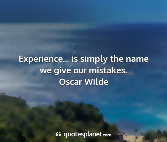 Experience... is simply the name we give our mistakes.