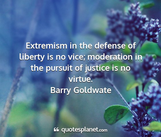 Extremism in the defense of liberty is no vice; moderation in the pursuit of justice is no virtue.Barry Goldwate