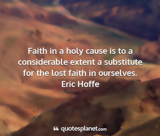 Faith in a holy cause is to a considerable extent a substitute for the lost faith in ourselves.Eric Hoffe