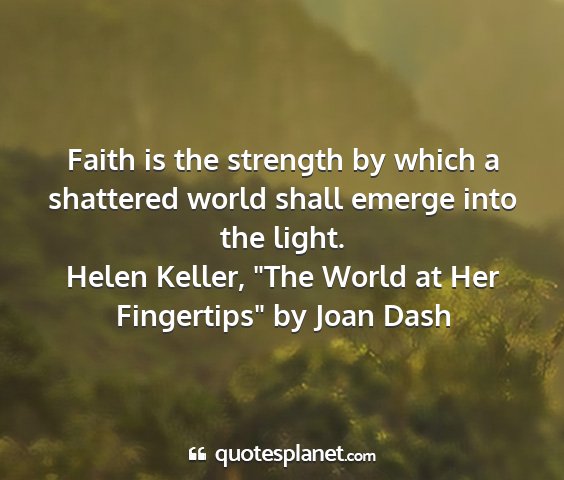 Faith is the strength by which a shattered world shall emerge into the light.Helen Keller, "The World at Her Fingertips" by Joan Dash