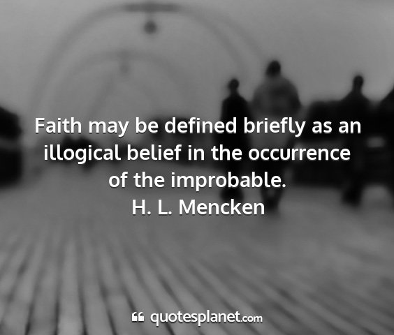 Faith may be defined briefly as an illogical belief in the occurrence of the improbable.H. L. Mencken