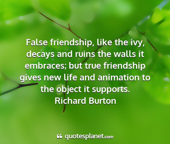 False friendship, like the ivy, decays and ruins the walls it embraces; but true friendship gives new life and animation to the object it supports.Richard Burton