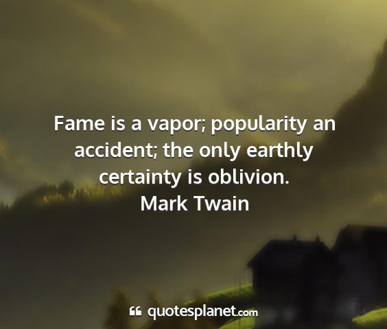 Fame is a vapor; popularity an accident; the only earthly certainty is oblivion.