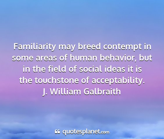 Familiarity may breed contempt in some areas of human behavior, but in the field of social ideas it is the touchstone of acceptability.J. William Galbraith