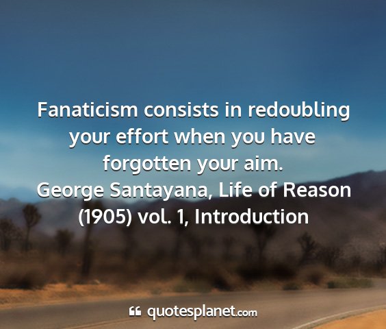Fanaticism consists in redoubling your effort when you have forgotten your aim.George Santayana, Life of Reason (1905) vol. 1, Introduction