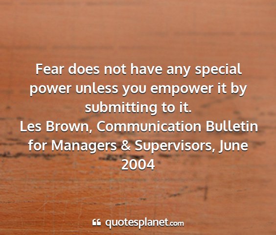 Fear does not have any special power unless you empower it by submitting to it.Les Brown, Communication Bulletin for Managers & Supervisors, June 2004