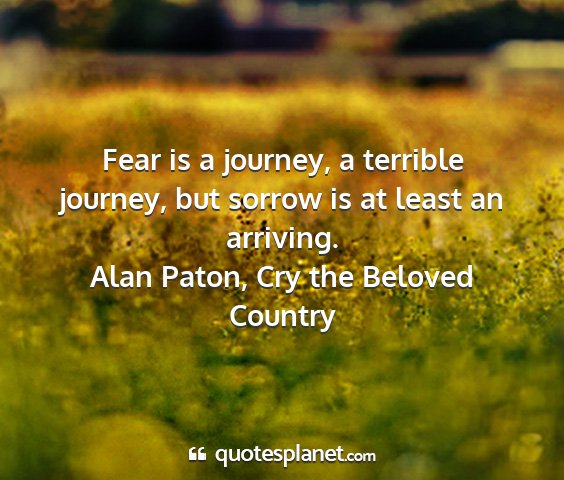 Fear is a journey, a terrible journey, but sorrow is at least an arriving.Alan Paton, Cry the Beloved Country
