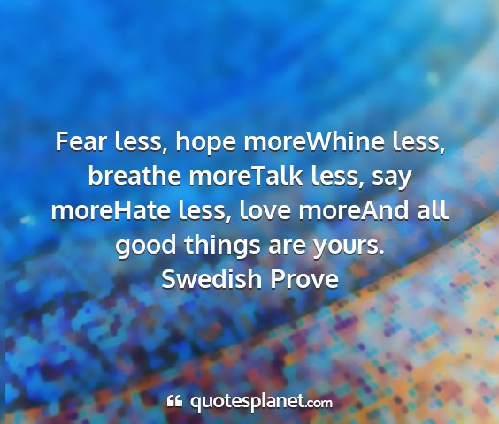 Fear less, hope moreWhine less, breathe moreTalk less, say moreHate less, love moreAnd all good things are yours.Swedish Prove
