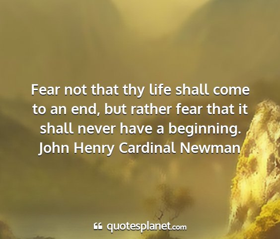 Fear not that thy life shall come to an end, but rather fear that it shall never have a beginning.John Henry Cardinal Newman