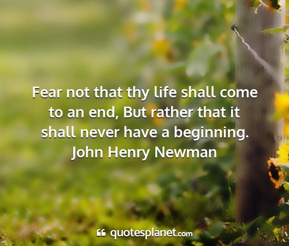 Fear not that thy life shall come to an end, But rather that it shall never have a beginning.John Henry Newman