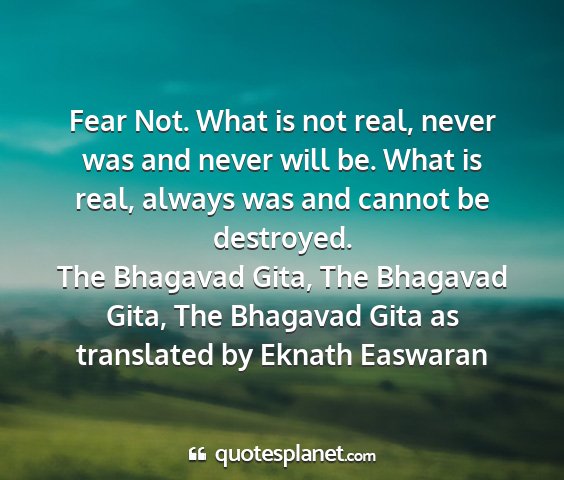 Fear Not. What is not real, never was and never will be. What is real, always was and cannot be destroyed.The Bhagavad Gita, The Bhagavad Gita, The Bhagavad Gita as translated by Eknath Easwaran