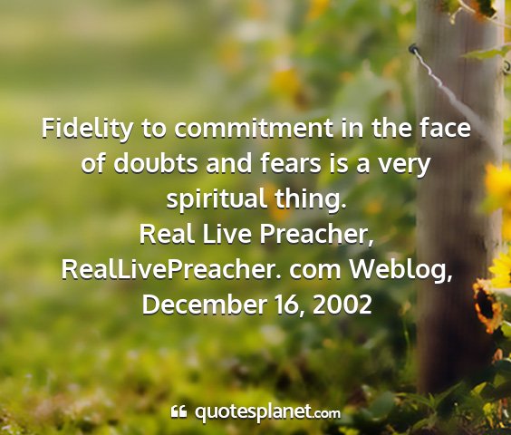 Fidelity to commitment in the face of doubts and fears is a very spiritual thing.Real Live Preacher, RealLivePreacher. com Weblog, December 16, 2002