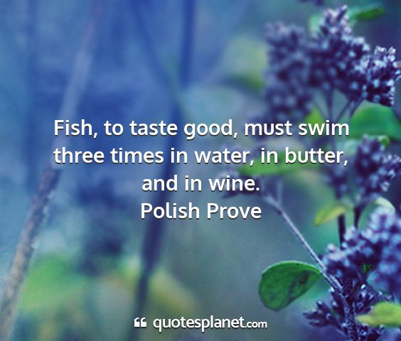 Fish, to taste good, must swim three times in water, in butter, and in wine.