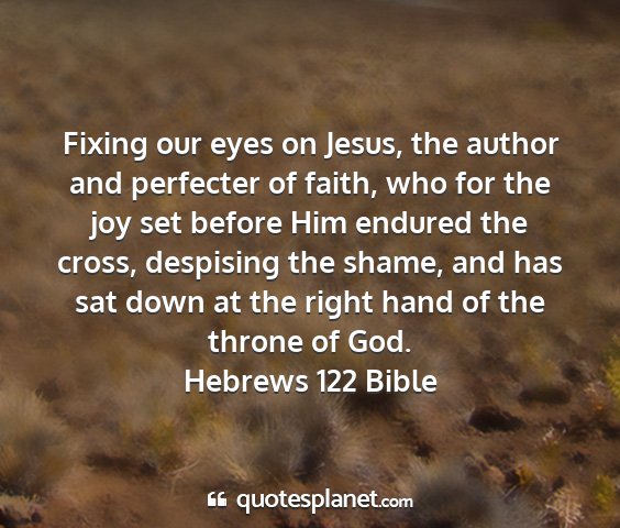 Fixing our eyes on Jesus, the author and perfecter of faith, who for the joy set before Him endured the cross, despising the shame, and has sat down at the right hand of the throne of God.Hebrews 122 Bible