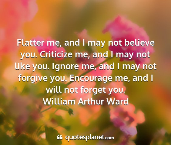 Flatter me, and I may not believe you. Criticize me, and I may not like you. Ignore me, and I may not forgive you. Encourage me, and I will not forget you.William Arthur Ward