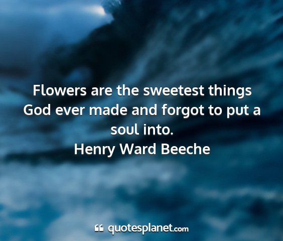 Flowers are the sweetest things God ever made and forgot to put a soul into.